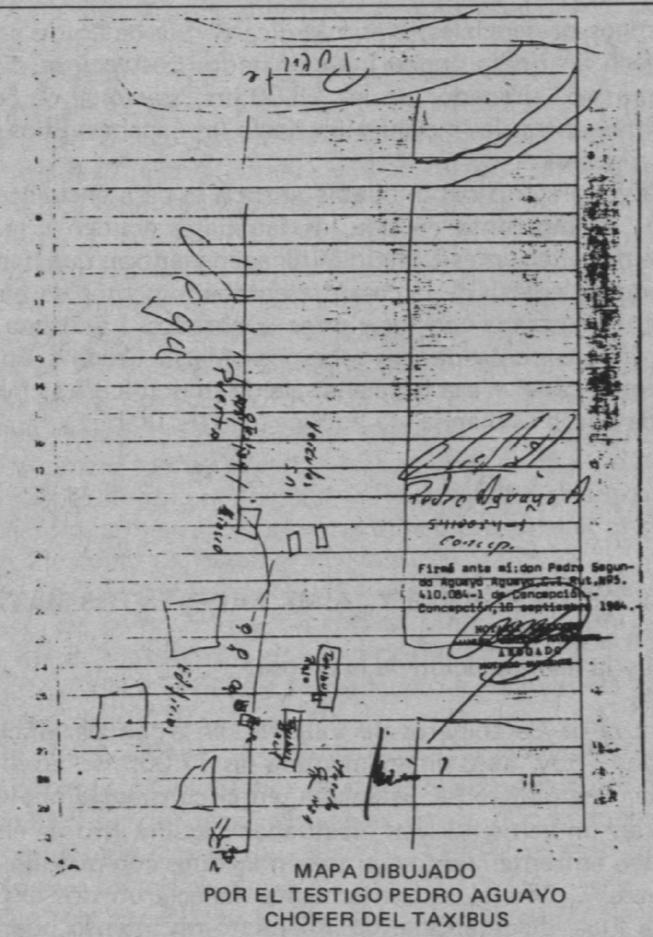 "Luego de unos minutos, carabineros y funcionarios de la CNI interceptaron la máquina del recorrido Concepción-Talcahuano. Luego de utilizar elementos disuasivos se produjo un tiroteo en el cual fue abatido uno de los sujetos y el otro, herido, trasladado al Hospital Regional de esta ciudad, donde pereció posteriormente". (El Mercurio, 24 de agosto de 1984).