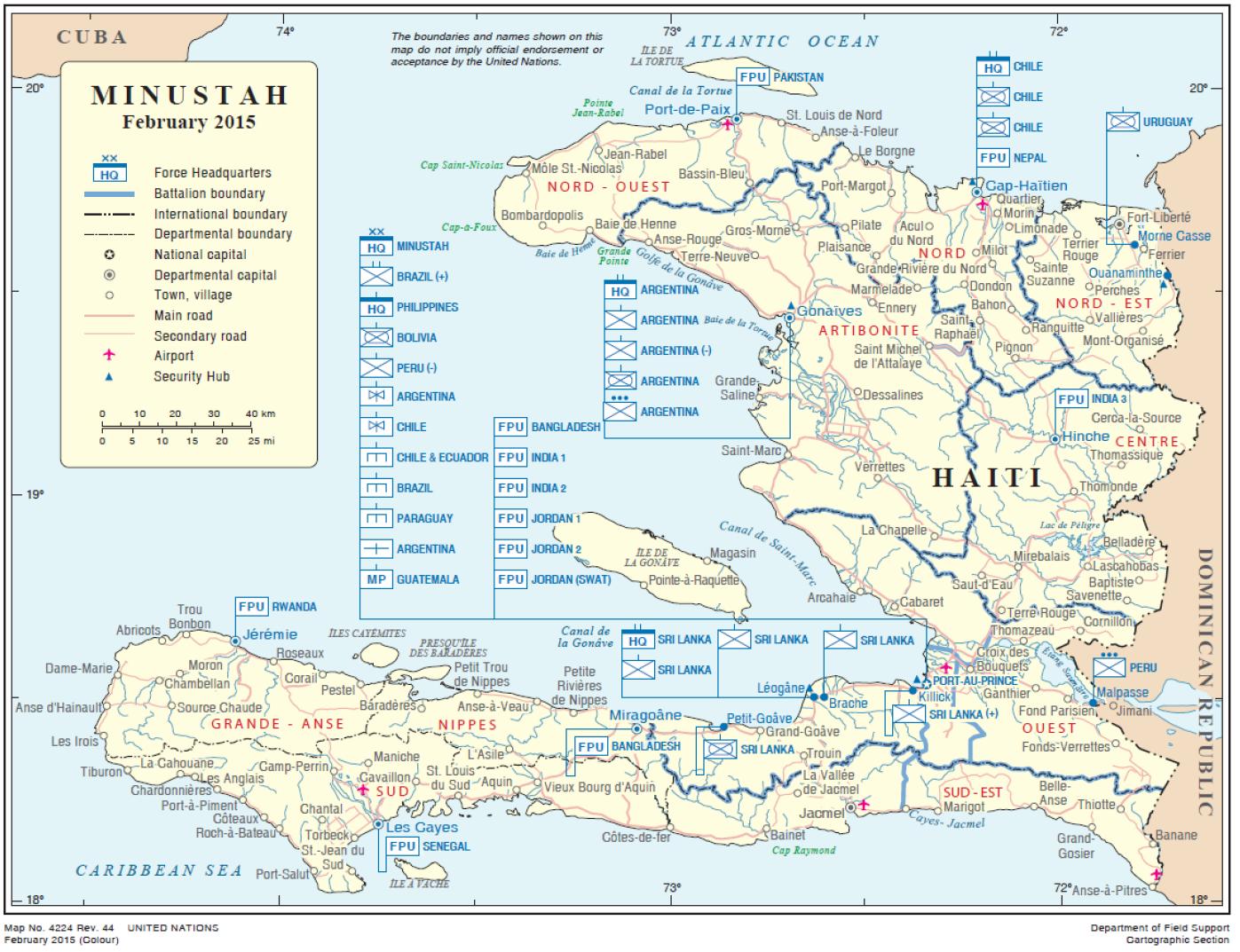 Mission des Nations Unies pour la stabilisation en Haïti : pays fournissant du personnel militaire et des contingents (au 18 février 2015)