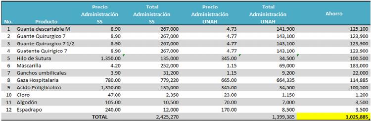 Comparativo de Precios Administración SS-Administ ración UNAH