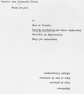 Les Comités d'internés seront autorisés à remplir ainsi qu'à faire remplir par des membres des Comités d'internés dans des détachements de travail ou par les médecins-chefs des lazarets et hôpitaux, des formules ou questionnaires destinés aux donateurs, et ayant trait aux secours collectifs (distribution, besoins, quantités, etc.). Ces formules et questionnaires dûment remplis seront transmis aux donateurs sans délai.