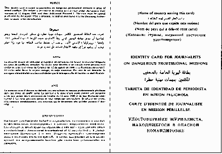 Identity Card for Journalists on Dangerous Professional Missions Database 'IHL - Treaties & Comments', View 'FULL'